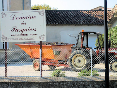 Tractors pulling trailers heavy and piled high with deep purple grapes, shuttle between the vineyards and the Wineries where they will line up to unload and head straight back to the fields. It is not uncommon to see signs on roads that say, "Attention! Vendange en Cours" In other words, there will be lots of slow tractors and trailers on the road, and pay attention, as they might pull out onto a road in front of you from a vineyard at any time!
